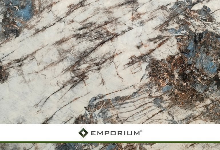 Peacock is a type of neolith marble with a white base color with shades of gray, red and blue