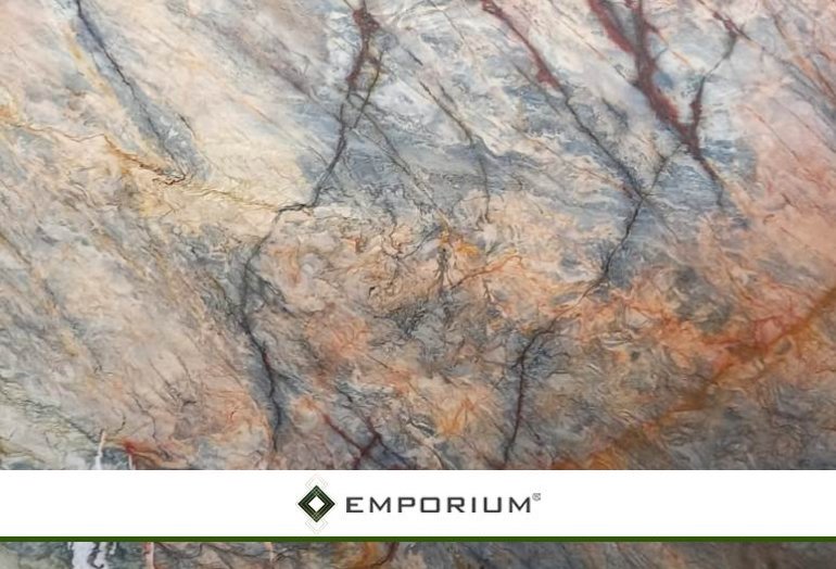 Golden Blue is a type of quartzite with a dominant red color with dark blue and white pattern