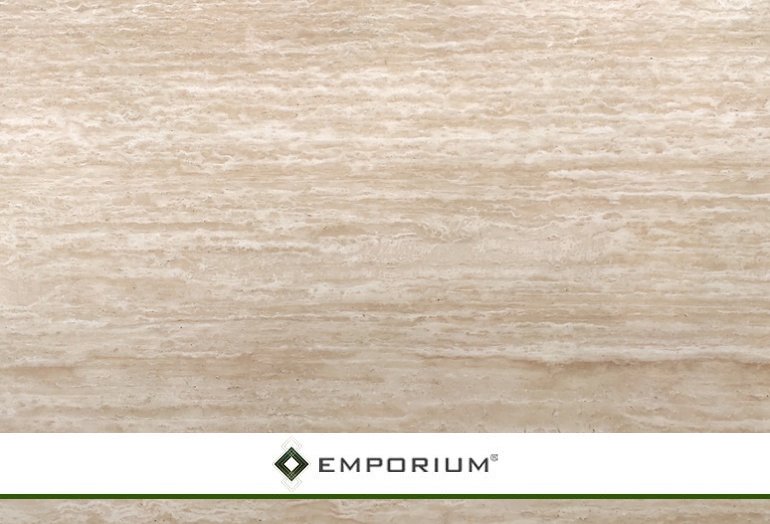 Travertine Beige is dominated by dark cream and light cream and has a horizontal line pattern.